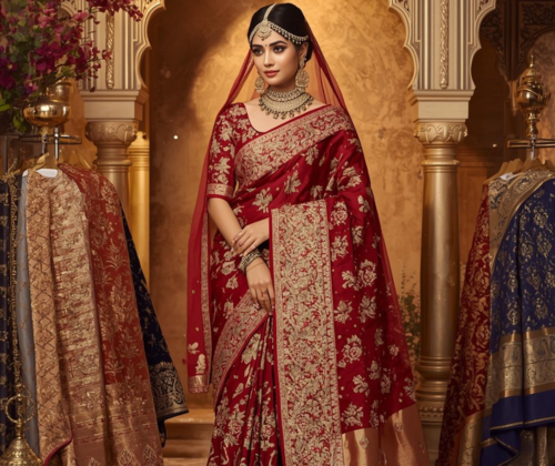 Discover a wide range of sarees — from Banarasi and Kanjivaram to Designer, Bridal, and Daily Wear collections. Each saree is handpicked for its quality, color, and craftsmanship.